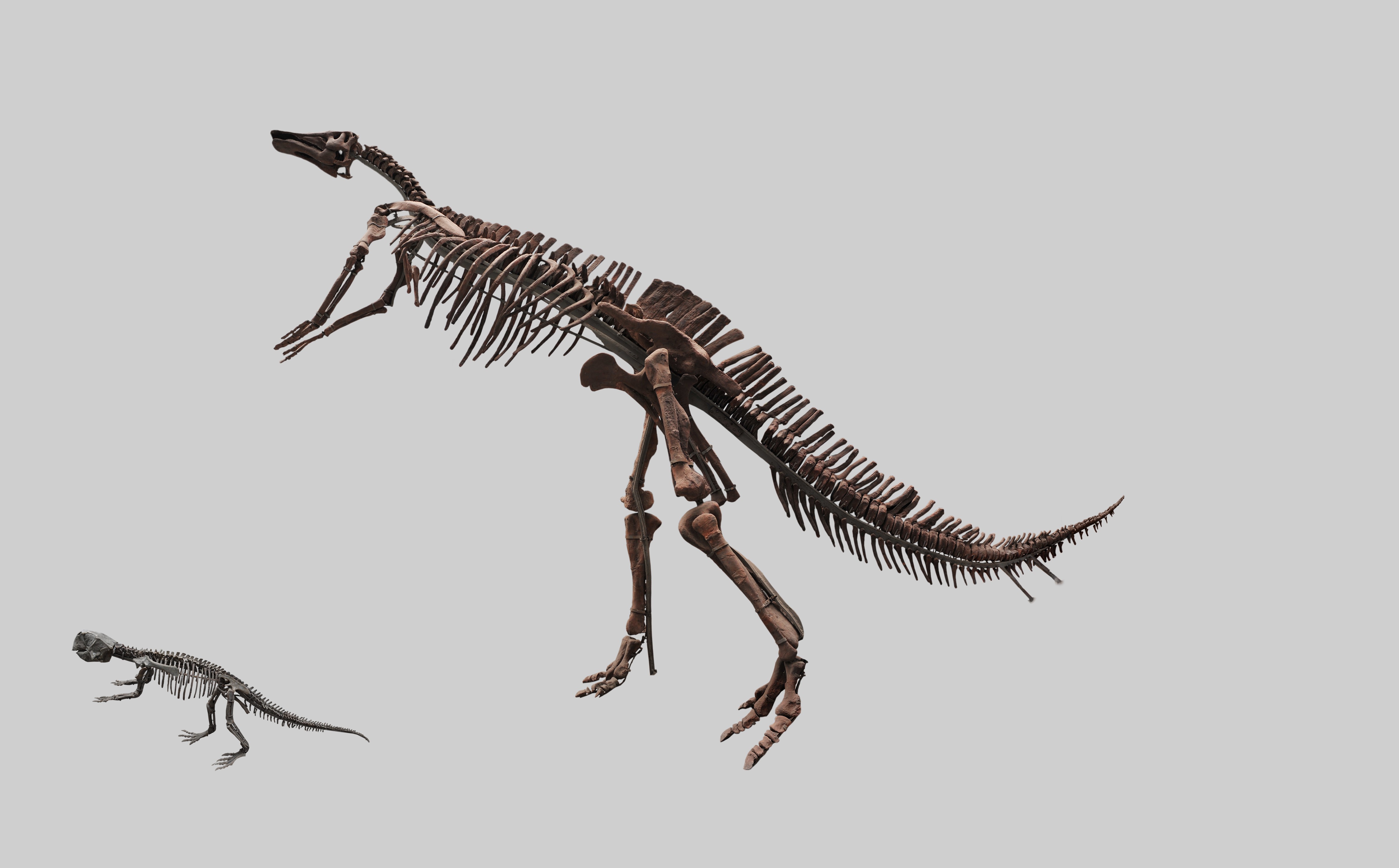↑ 满洲龙化石(右)与鹦鹉嘴龙化石