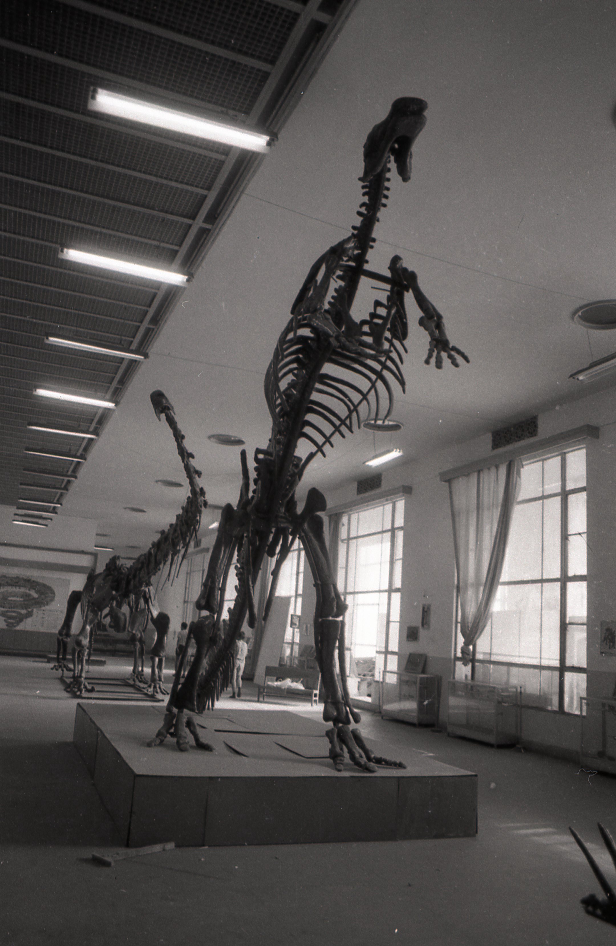 1978年以来,黑龙江省博物馆对嘉荫龙骨山进行了多次抢救性大规模野外发掘。上世纪八十年代初,在我校黑龙江校友的协调下,博物馆时任馆长王良忱、副馆长黄伯裔等人多次前往哈尔滨商议恐龙骨架移交事宜。他们坚持不懈的精神感动了黑龙江省博物馆,最终将其中这具满洲龙骨架有偿交换给了武汉地质学院,成为师生从事古生物教学科研的重要标本。
