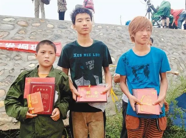 ↑ 二〇一二年发现化石的三个少年获得奖励。 (资料图片)