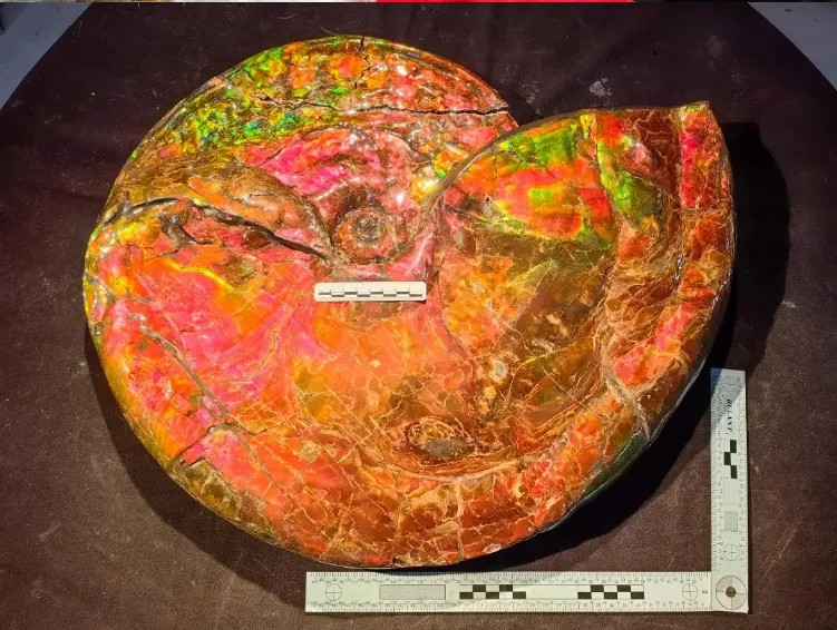 其中,移交的加拿大彩斑菊石色彩斑斓,尺寸达52cm*44cm,既具有较好的观赏展陈价值,又具有重要的科研科普意义。河源市博物馆将在完成该批化石的普查登记、科研科普工作后,适时进行展出。