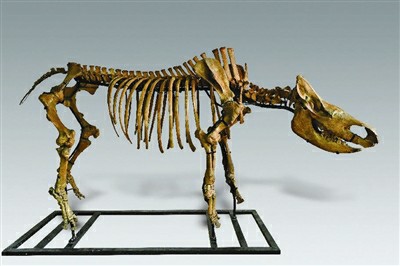 图为披毛犀完整骨架