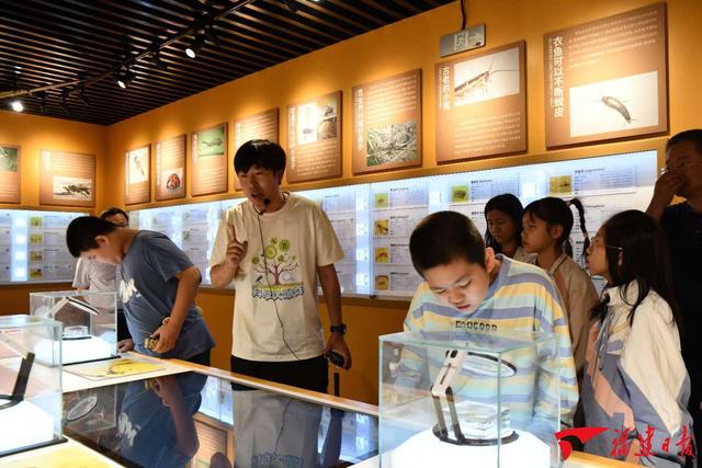 图为陈睿博士在万寿岩昆虫历史博物馆内为学生做讲解
