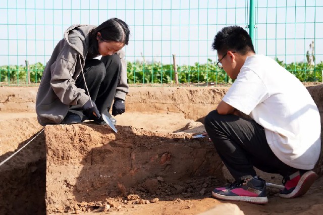 在发掘现场,12个探方依次排布,部分探方已发掘到生土层。河北师范大学历史文化学院考古系的师生们在有条不紊开展工作。一些学生用小铲子、小竹棍一点点发掘;一些学生用刷子对陶片、蚌壳等物品进行清理;一些学生则拿着尺子和笔进行考古绘图。