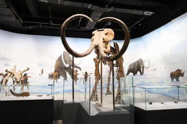 菊石是一种已经灭绝的海生无脊椎动物,属于头足类,它们与现生的鹦鹉螺、鱿鱼和章鱼有着亲缘关系。该馆展示的来自马达加斯加的菊石化石不仅数量丰富、类型多样,而且很多菊石化石因矿化作用呈现出色彩斑斓的外壳。