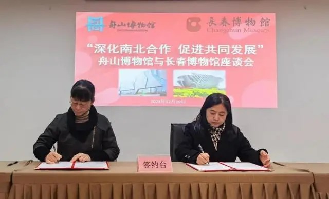 此次“伊通河畔冰河巨兽的乐园——长春博物馆古生物化石展”在舟山博物馆亮相,是该展览继在中山市博物馆、珠海博物馆展出后的又一次对外交流展出。展览开展当天,长春博物馆和舟山博物馆相关工作人员开展座谈研讨,两馆就陈列展览的策划与实施、藏品的科学管理与保护、学术研究的深入合作、人才的培训以及文创产品的开发与推广等方面达成了共识,并签署了《友好博物馆共建合作框架协议》。为加强馆际间的交流与协作,实现资源共享与优势互补,共同推动两地文化事业的繁荣发展,搭建了坚实桥梁。