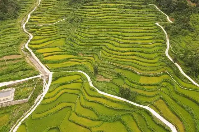 沿着蜿蜒曲折的山路缓缓前行,翻越几座巍峨的大山,眼前豁然开朗,远处隐约可见一个村庄静谧地坐落山间。驱车驶入其间,只见炊烟袅袅升起,牛羊三五成群,层层叠叠的梯田铺陈开来。