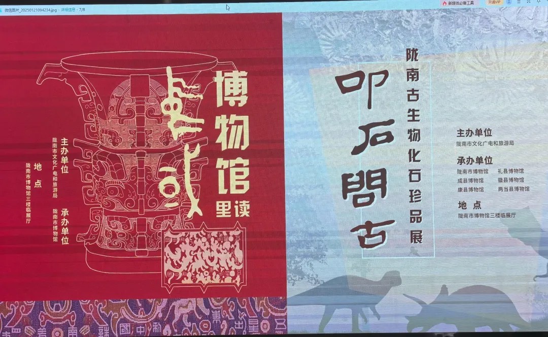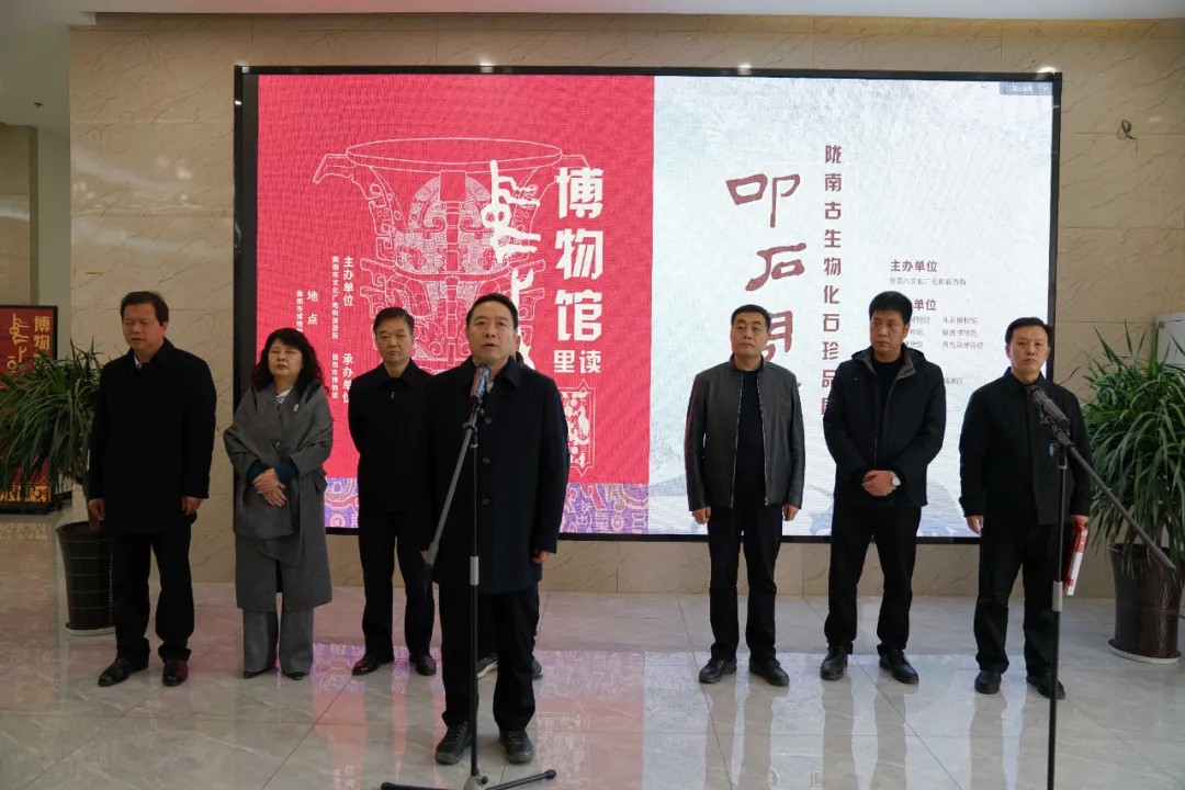 为深入学习贯彻习近平文化思想,贯彻落实全省全市宣传思想文化和全省文物工作会议精神,进一步传承弘扬中华优秀传统文化、促进文旅融合,丰富春节期间群众精神文化生活,1月22日上午,由陇南市文广旅局主办,陇南市博物馆联合礼县、徽县、康县、成县、两当县博物馆承办的《叩石问古——陇南古生物化石珍品展》暨由陇南市博物馆承办的《博物馆里读中国》举行开展仪式。市文广旅局党组书记魏朝晖出席开展仪式并宣布展览开展;市政府办副主任赵潇意,市政协文史委主任孟清义,市社科联主席周建军出席;局属单位负责人、局机关各科室负责人、全系统干部职工和礼县、徽县、康县、成县、两当县博物馆负责人参加。陇南市博物馆馆长曹海兵主持开展仪式。