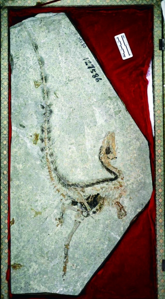 ↑ “中华龙鸟”化石标本。 中国科学院南京地质古生物研究所供图