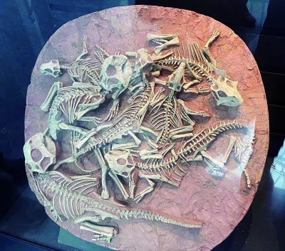 ↑ 一窝鹦鹉嘴龙化石。南京日报/紫金山新闻记者 张安琪 摄