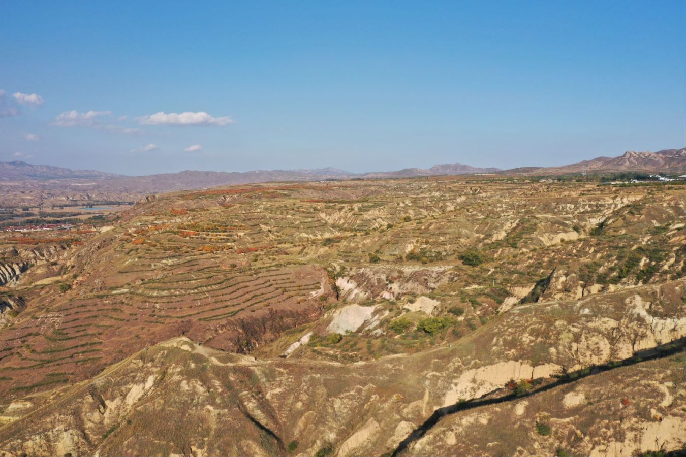 沿着泥河湾国家考古遗址公园祖猿印象主题雕塑一路向北,大约50米远,就是著名的小长梁遗址,该遗址距今约136万年。站在小长梁遗址平台上远眺,沟壑纵横间,100多万年的人类史就埋在这片错落有致、连绵起伏的丘陵地带。遗址旁的介绍牌上,写下了遗址从发现到震惊世界的整个历程,这里是泥河湾遗址群发现的第一个有着超百万年历史的文化遗址。