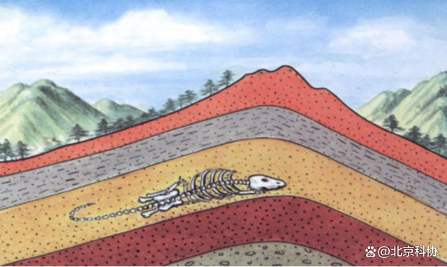 ↑ 地层上升,化石露出