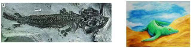 让我们深入了解一下海洋中的鱼龙。这张图片展示了我们在中国安徽巢湖地区的古生物化石发掘成果,经过北京大学国际合作研究团队与安徽省地质博物馆的合作,我们在巢湖的马家山地区进行了挖掘,发现了最早期的鱼龙化石。