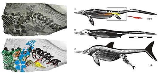 这一发现不仅突显了正在分娩的鱼龙的罕见性,而且解开了关于早期海生爬行动物繁殖方式的谜团,从而进一步证明,初期下海的鱼龙采用的是胎生方式,而非卵生。这也表明,动物在适应海洋生活的演化过程中,可能经历了一种突变而非渐变的趋势。