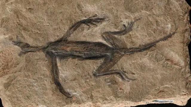 当然,也不能说这块化石完全是赝品,因为至少后肢的股骨、胫骨和腓骨是真实存在的,研究人员还在其中检测到了一些菱形的小鳞片,可能是皮内成骨(osteoderm),许多爬行动物和两栖动物中都存在这种结构。研究人员推测,前人只是在几块保存状况极差的骨头和皮内成骨周围进行加工,然后涂上了黑色的颜料,让它看上去是一只细长的蜥蜴样动物。