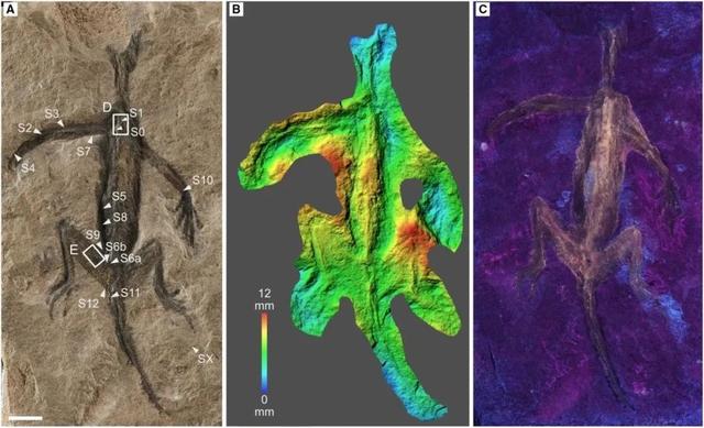 ↑ 古三齿龙化石的紫外成像(图片来源:原论文)