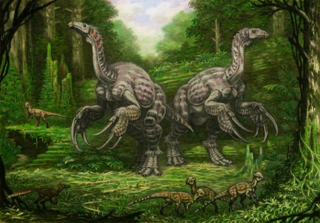 与镰刀龙生活在一起的植食性恐龙还有很多,比如鸭嘴龙类、蜥脚类、甲龙类等,难道它们不会相互争抢食物吗?当然不会,镰刀龙凭借着其傲人的高度,可以吃到其他恐龙够不到的树叶,这样就避免了竞争。