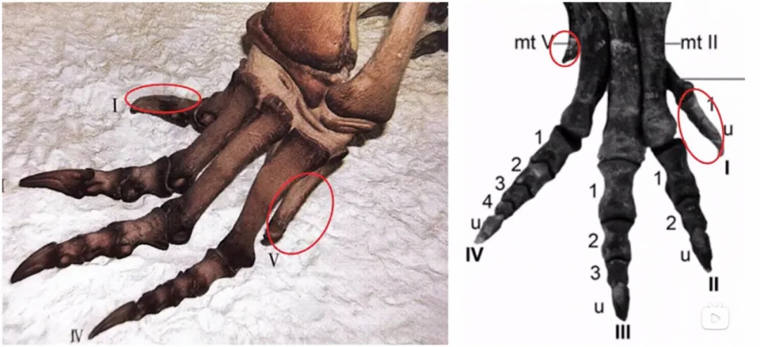 首先我们先把四足和双足恐龙区分出来,四足的名为蜥脚类恐龙,它们具有较小的头部、较长的颈部和尾巴以及粗壮的四肢,包括雷龙、腕龙、梁龙等。其体重大,四足足迹一般显示出大小、形状不同的前后脚印,后脚印比前脚印大,还都可以有四五趾之多。四足恐龙足迹远不如双足恐龙足迹常见,是因为大多数四足恐龙更喜欢干燥或数木繁盛的栖息地,在那里它们的脚印不会被保存下来;而双足恐龙的脚印是最普遍的,它们通常包含形状相似的指纹左右序列,每个序列又包含三个主要的脚趾印记,所以通常被称为“三趾印”。但实际上大多数双足恐龙每只脚上都有四到五根趾头,但其中一根脚趾很小,并且处于脚后部内侧的高位,即使在化石上有痕迹,拇指脚印也通常小而浅;而第五趾在进化过程中慢慢退化了。