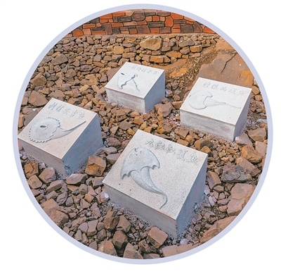 ↑ 江西省武宁县澧溪镇化石广场上的化石模型。受访者供图