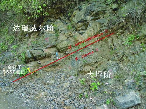 1995年,国际界线工作组正式向国际地层委员会奥陶系分会提交了建立全球达瑞威尔阶“金钉子”的报告,提议以澳洲齿状波曲笔石在中国浙江黄泥塘剖面的首次出现定义其底界。