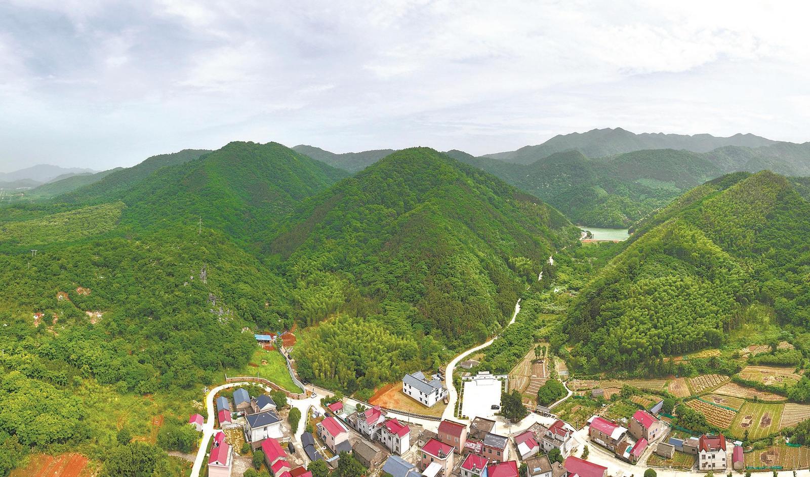 ↑ 华龙洞遗址所在的东至县尧渡镇汪村村庞汪村民组东约0.5公里的梅源山南麓。记者 李博 摄
