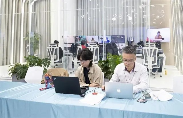 ↑ 听友志愿者柴俊和实习生杨颖在搜集直播间喜马拉雅和央视频的提问
