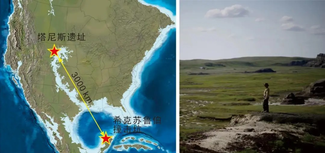 塔尼斯遗址位于美国西北部的北达科他州,距离希克苏鲁伯撞击坑约3000公里(图1)。与现今的陆地环境不同,6600万年前的塔尼斯地区处于北美内陆海道西岸(WIS)附近的古老河谷之中,此时正在沉积的地层后来被命名为地狱溪(Hell Creek)。