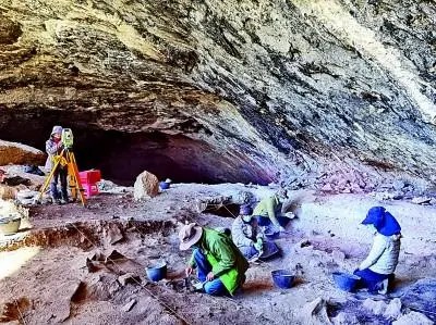 经国家文物局批准,考古队在2018—2023年连续开展田野考古发掘工作。目前,已出土旧石器时代至早期金属时代各类文化遗物逾万件,包括石制品、骨制品、陶片、青铜器、动物骨骼、植物遗存等。一号洞的洞壁上还发现排列有序的竖条纹、人形轮廓、手掌和太阳等以红色赭石绘制的岩画。