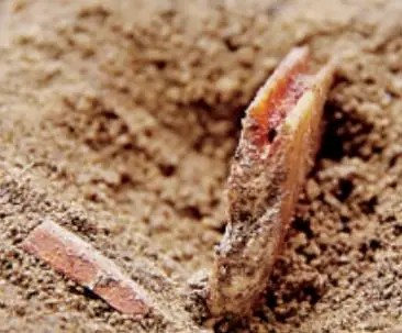 ↑ 梅龙达普遗址出土的骨柄石刃刀。作者供图