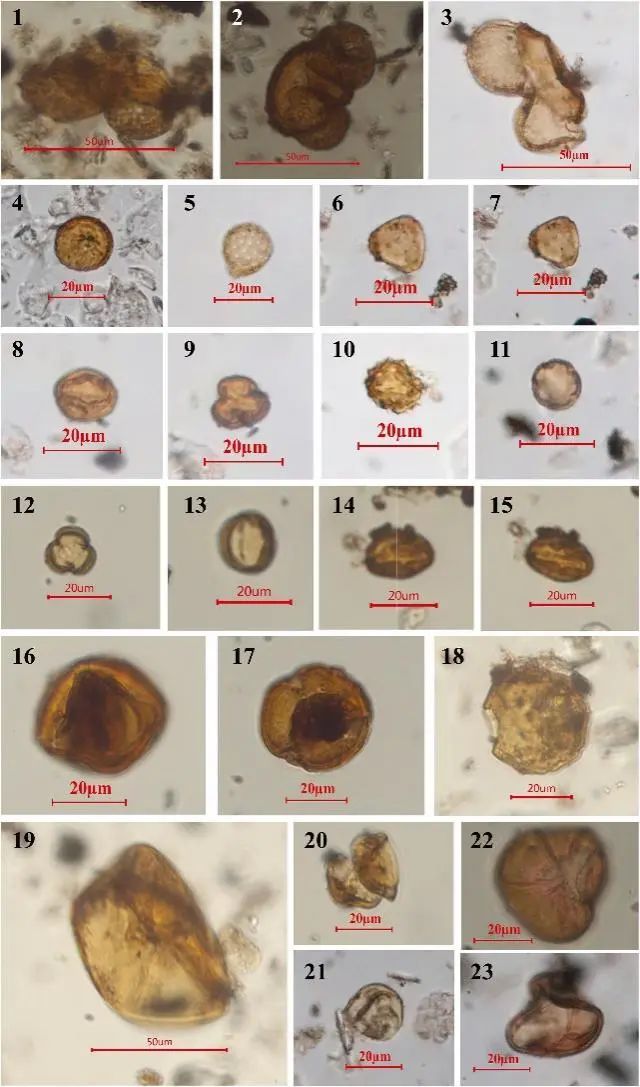 ↑ 从埋藏粪化石的地层中提取到的孢粉化石(图片来源:王建供图)