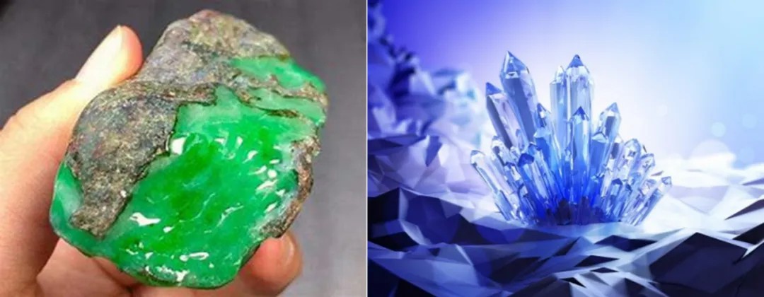 ↑ 图一:翡翠(左)、天然宝石水晶(右)