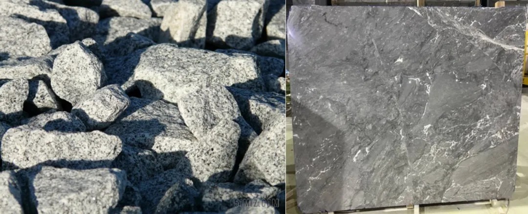 ↑ 图二:花岗岩(左)、大理石(右)均可做建筑材料