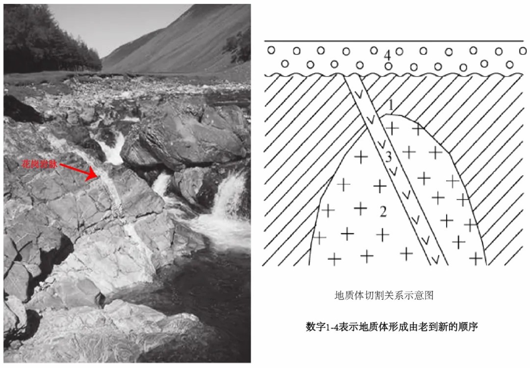 他经过长时间的考察,一次偶然间发现,爱丁堡北部高地凯恩戈姆山脉向南流的蒂尔特河的砂砾中遍布花岗岩卵石和古老变质岩岩块。他由此推断出,河床中一定也有这两类岩石,向上游考察或许能找到二者的交界处。于是,他沿蒂尔特峡谷而上,发现了他一直在寻找的东西:砖红色的花岗岩岩脉切穿年代较早的变质岩,并使其围岩发生蚀变(在现在地质学中这种野外的“穿切”关系也依然用来判断岩石形成的相对早晚)。这表明,当时的花岗岩是在上覆岩层形成以后才侵入的。也就是说,花岗岩的年龄应该比围岩年轻,而且这里出现了熔融现象。这说明,花岗岩是炽热的熔岩冷却之后形成的,而不是从水中结晶出来的。这与当时流行的“水成论”明显不符。