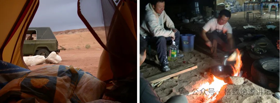考察过程中有很多很多“深度旅游”的乐趣,这是我们在野外住帐篷、野炊的画面。