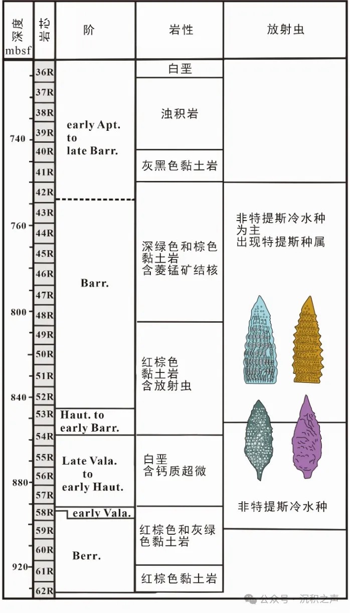 ↑ 图8 Argo深海盆地含放射虫红色黏土岩采样层位