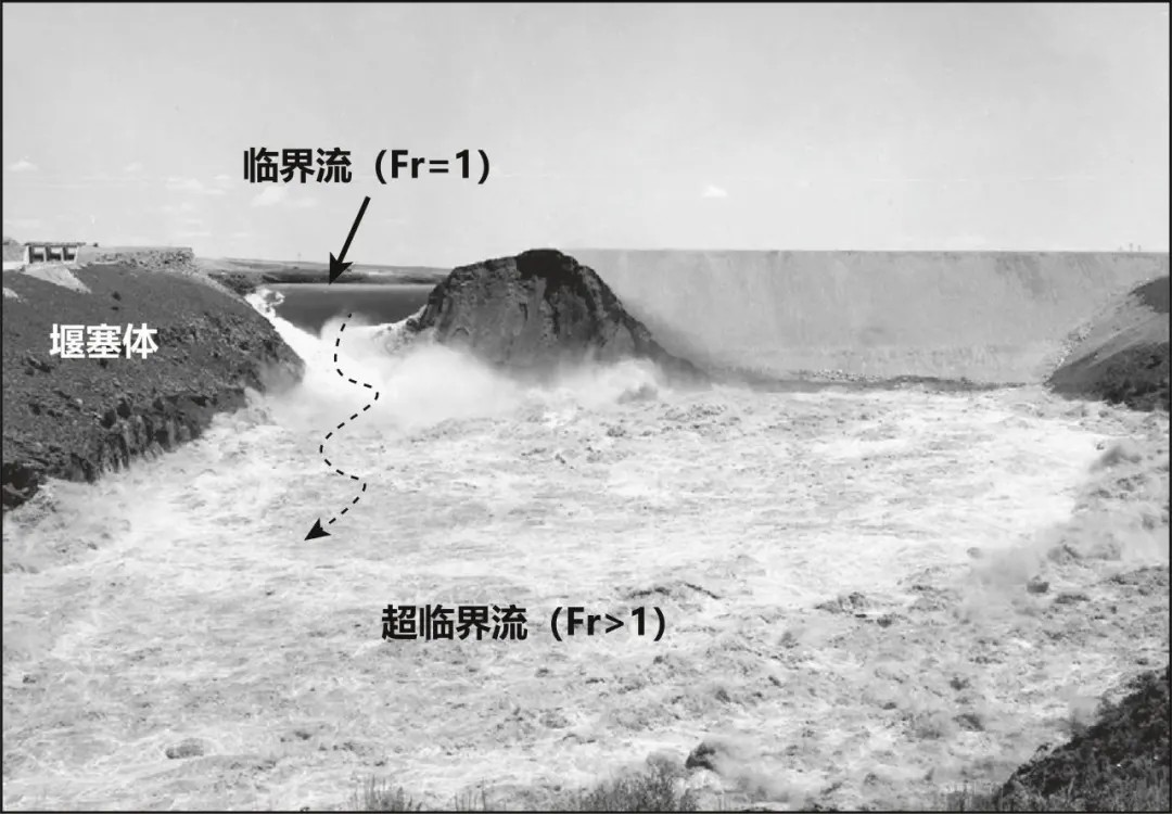 受溃决洪水流量呈现的先急剧上升后下降的短历时快速变化以及河道几何形态影响,下游的溃决洪水流态基本为超临界流(弗劳德数Fr>1,弗劳德数为表征流体惯性力和重力相对大小的一个无量纲参数,可用于反映水流流态;弗劳德数越大,意味着水流的平均动能占比越大),而溃口附近的水流可视为临界流(Fr=1),如图10所示: