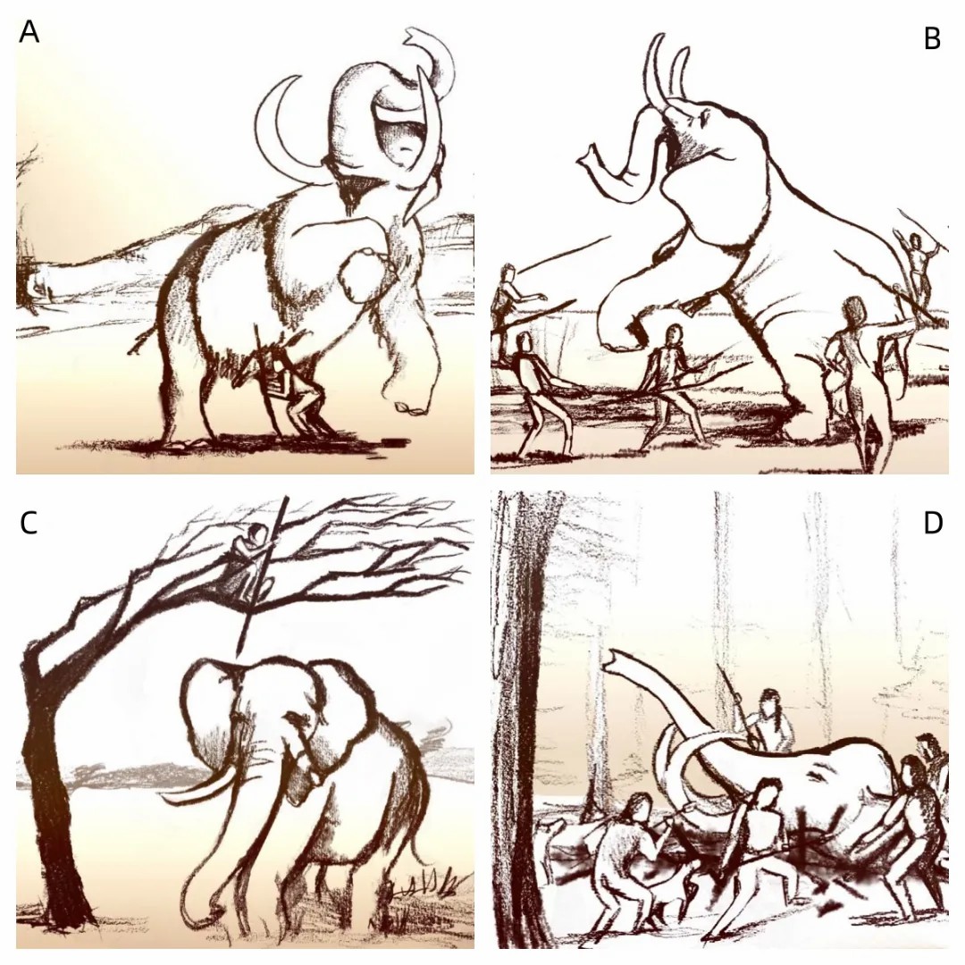D,制造陷阱围困大象,利用猎狗围攻大象|图片来源:Aviad Agam & Ran Barkai, 2018
