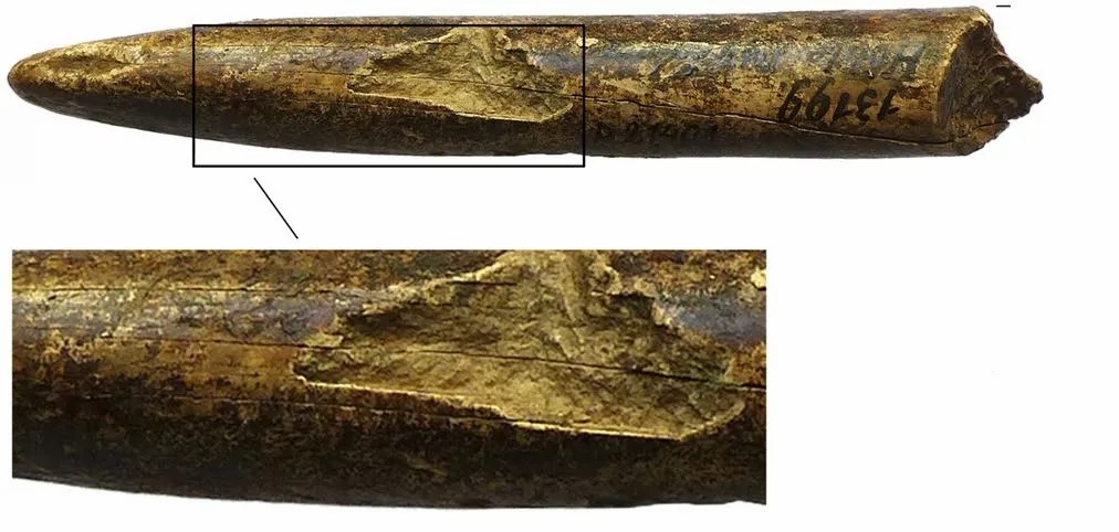 ↑ 猛犸象牙制成的投掷工具的矛尖|图片来源:Sebastian J. Pfeifer et al., 2019