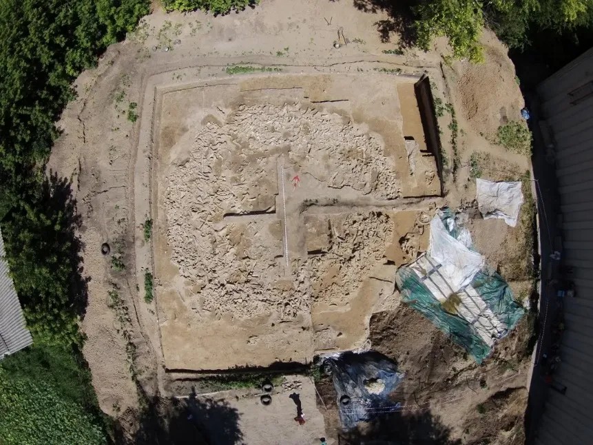 ↑ 直径约12米的圆形建筑内,密布至少60具长毛猛犸象的骨骼|图片来源:A. E. Dudin