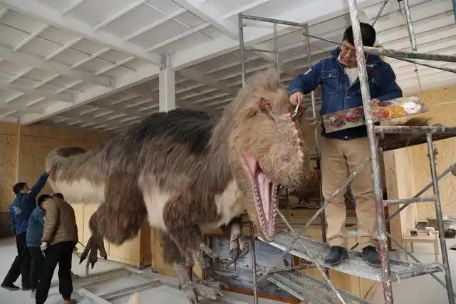 工作室周边有总面积近1万平方米的多个设计创作工坊、模型制造车间,还有2600平方米的古自然科普展厅,共放置陈列了3000多件形态各异的恐龙及恐龙骨骼复原模型。