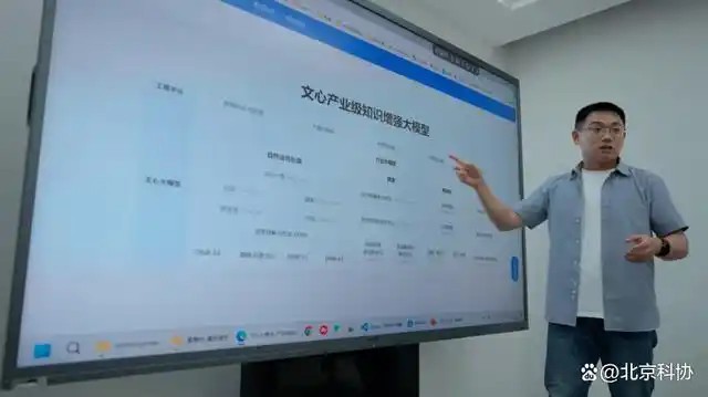 工作人员介绍文心产业级知识增强大模型。受访者供图