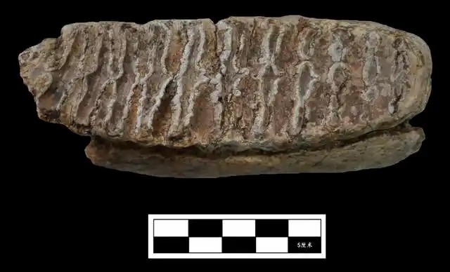 2021 年跋山遗址出土的古菱齿象臼齿 李罡供图