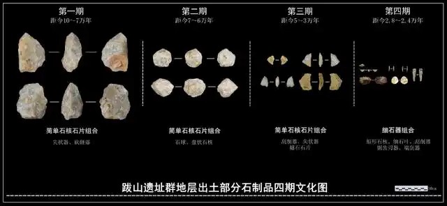 第一期,即距今 10~7 万年的跋山遗址文化层;第 2 期为距今 7~6 万年的跋山遗址文化层;