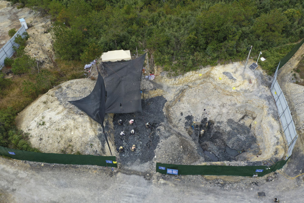 位于福建政和县的野外考察和发掘现场(2024年11月9日,无人机照片)。新华社发(古脊椎所供图)