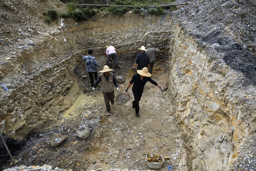 古脊椎所和福建地调院组成的联合考察队队员在位于福建政和县的野外考察和发掘现场工作(2023年10月21日摄)。新华社发(古脊椎所供图)