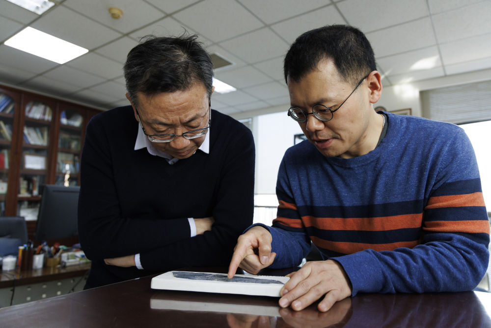 2月10日,古脊椎所王敏研究员(右)和周忠和院士在办公室讨论政和八闽鸟标本下一步的研究方向。新华社记者 金立旺 摄