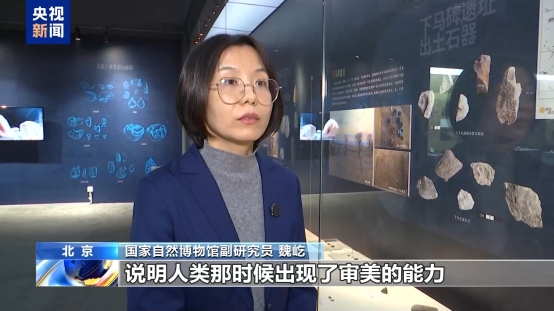 国家自然博物馆副研究员 魏屹:石器的表面还发现有骨柄的残留物,以及用植物纤维进行缠绕,将骨柄装在石刃上的残留物,说明当时的人们已经会制作复合工具来加以使用了。因为这个石头可能不够长,不好握。用一个木棍或者用骨柄,就较方便用手握。就像现在用刀一样,非常利手。所以行为和认知都进一步复杂化了。使用复合工具,包括加工颜料,其实都是现代人,智人的行为特征之一,非常典型的特征。