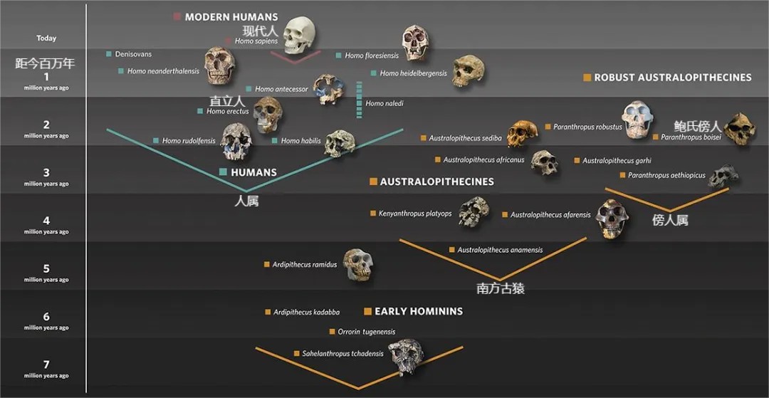 而能人、鲁道夫人和直立人与我们一样,属于人属,他们与现代人的亲缘关系更近,甚至有能代表我们在200万至100万年前分布于非洲的祖先的化石。