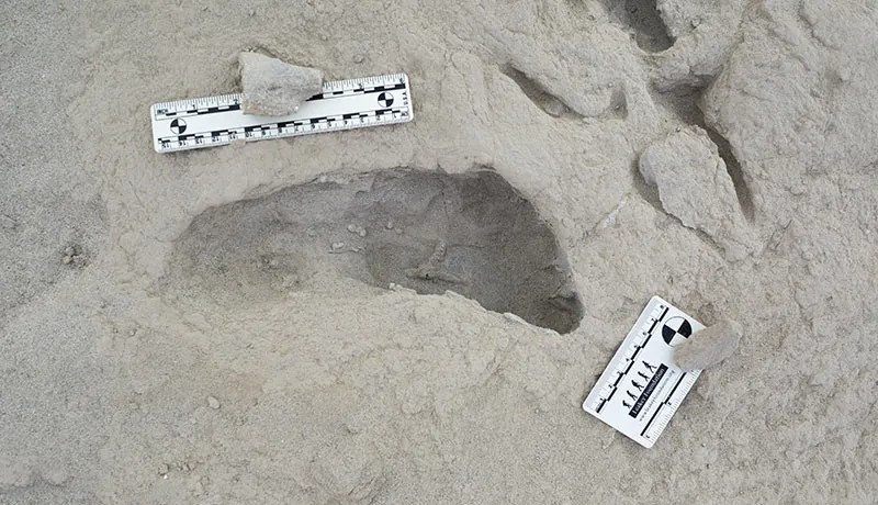 在15个人类足迹化石中,有12个足迹分布于同一条路径上,是由一个人类个体自南向北以约1.81米每秒的速度快速行走形成的,剩下的3个足迹则是孤立足迹,其方向与位置各不相同,被认为由三个个体形成。