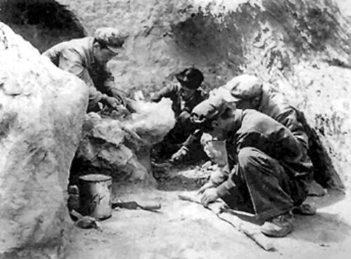 1973年4月5日,黄河象化石开始正式发掘,经过43天的艰辛努力,到5月17日,黄河象化石全部顺利取出。黄河象的发掘工作根据当时所处环境,采取了大揭顶的办法,即以大象化石暴露处为基点,按山坡地形向两边各延伸2米,向下延伸4米,从上而下层层挖掘,从最开始发现象牙,到头骨完全暴露,再到其他骨头相继暴露和取出,证明黄河象是一具保存非常好的原地埋藏化石。