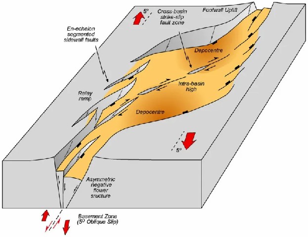 断裂带附近的沉积盆地存在大厚度的富含有机物的海相和湖相沉积,这些沉积物在快速沉降和埋藏及高热流作用下可形成良好的生油层,而各种碎屑沉积为储油层。因此,断层附近形成的盆地是具有重要意义的油气区,也是盐类等沉积矿床的聚积产出地。